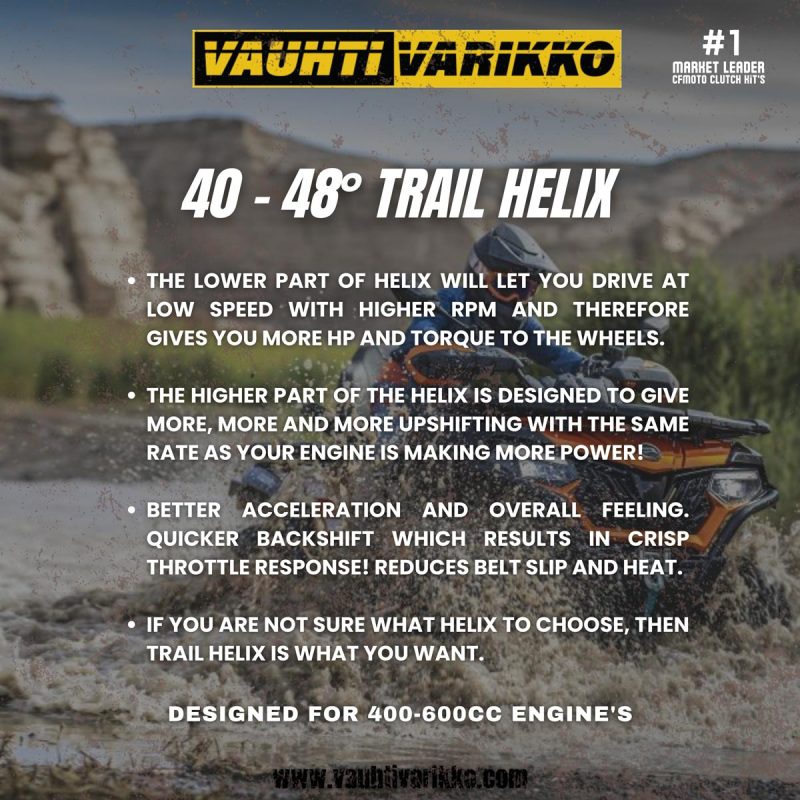 - Our multiangle/progressive helixes are designed to slow your upshifting under 25km/h speeds. To give more wheel horsepower at low speed!